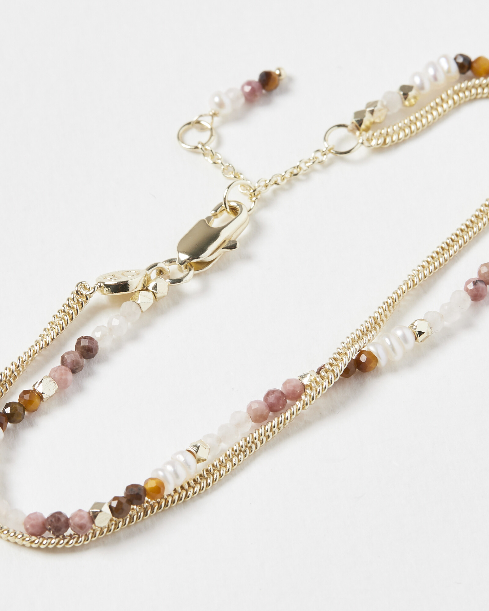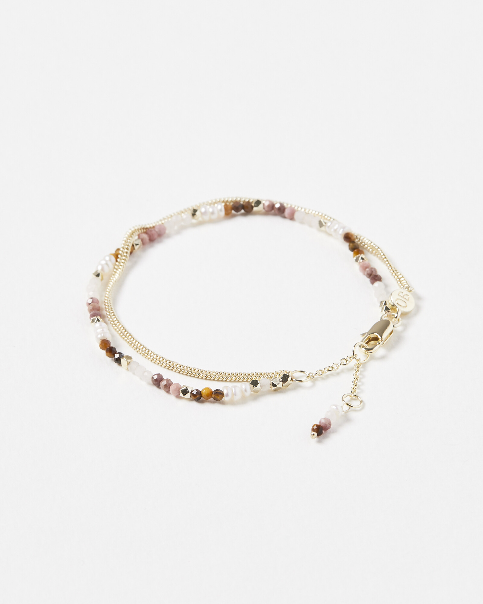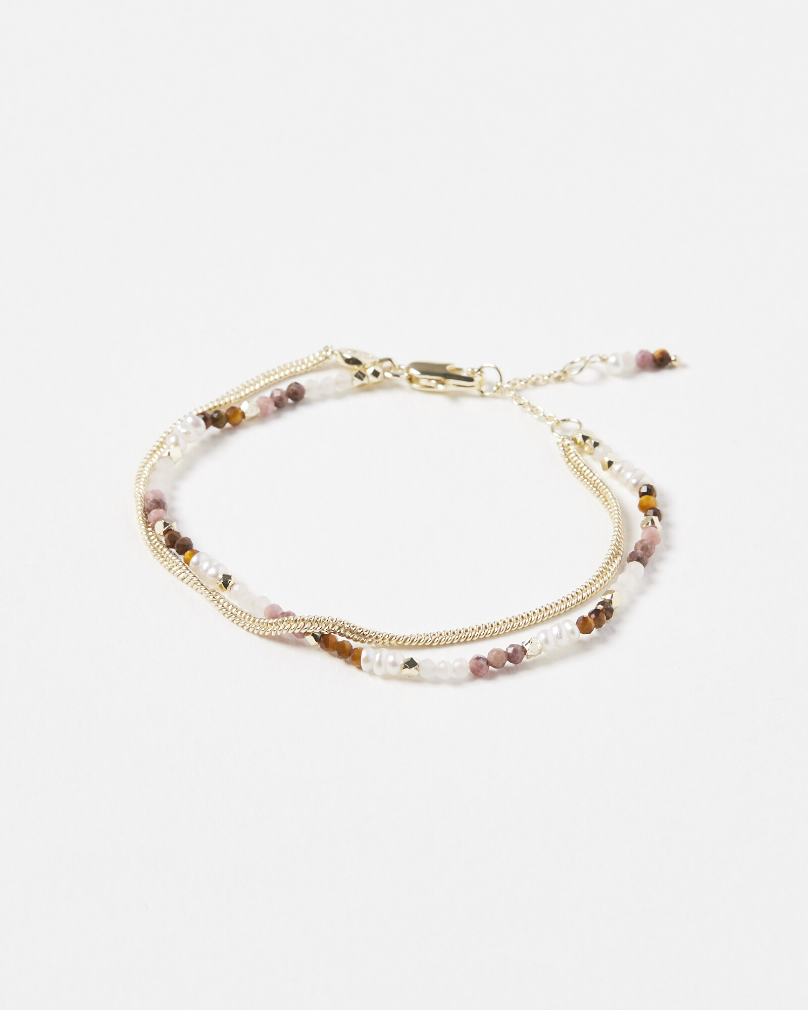 Lyria Stone & Pearl Beaded Gold Plated Chain Bracelet