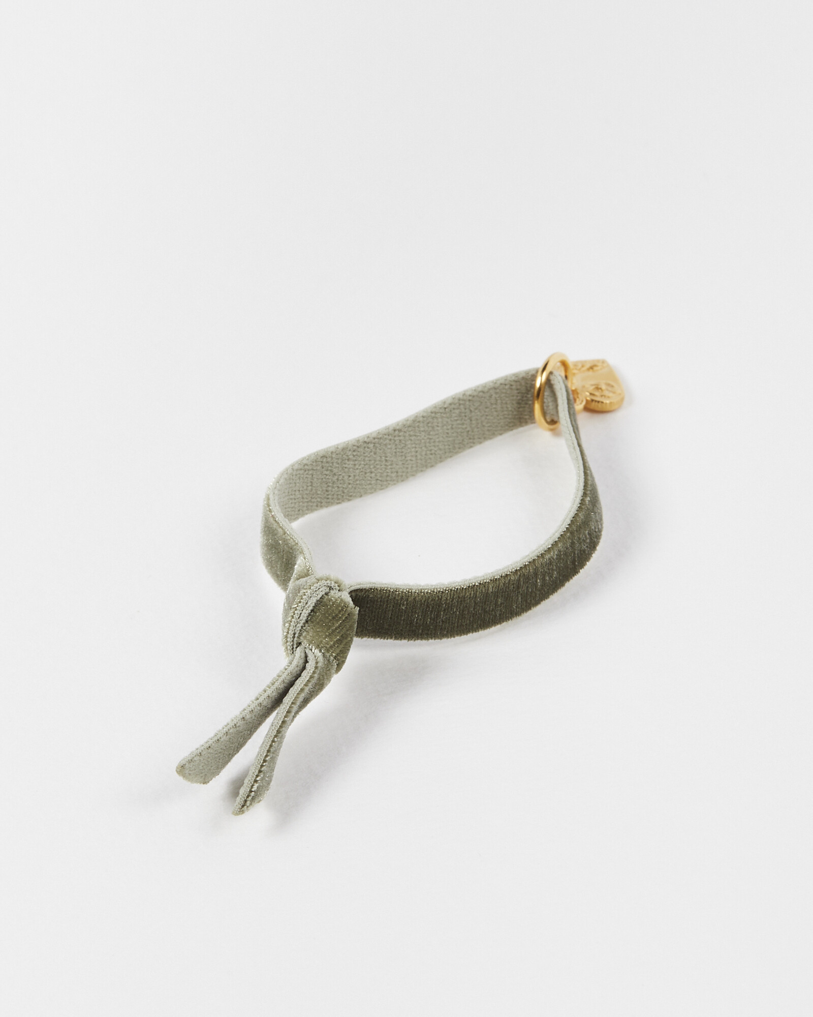 Home | Jewellery | Bracelets | Heart Bracelets | Mikaela Lyons x Oliver Bonas Green Velvet Gold Plated Heart Charm Bracelet