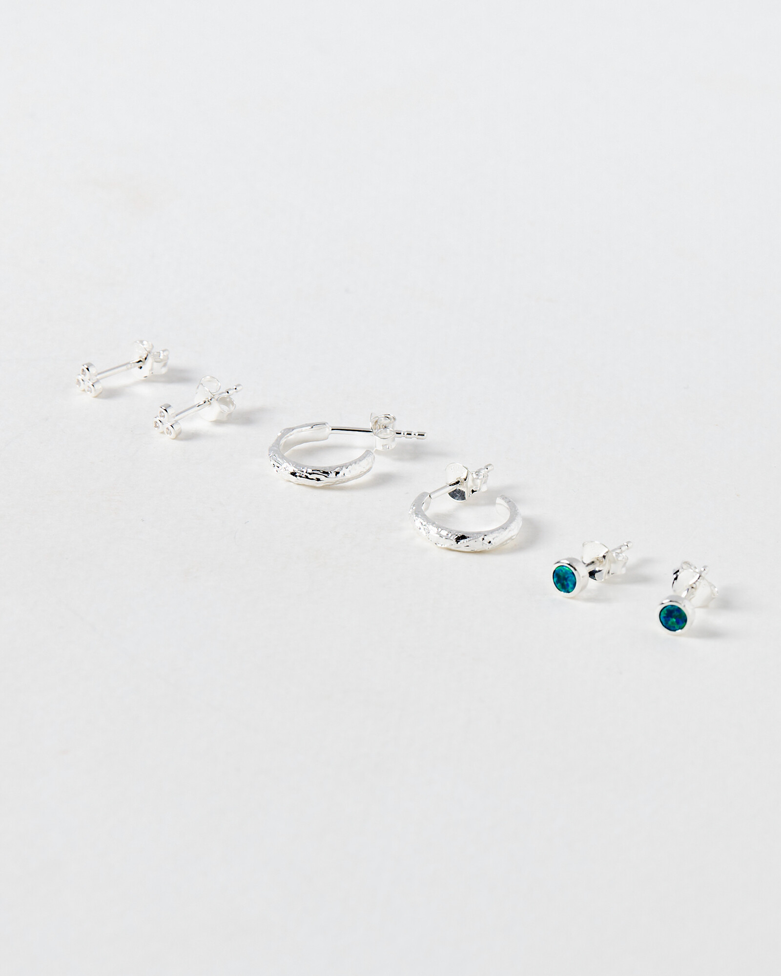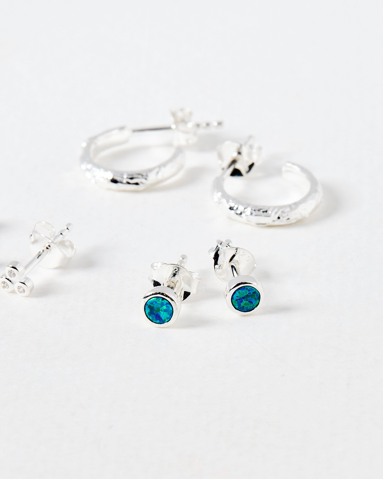 Nancy Opalite Sterling Silver Hoop & Stud Earring Set