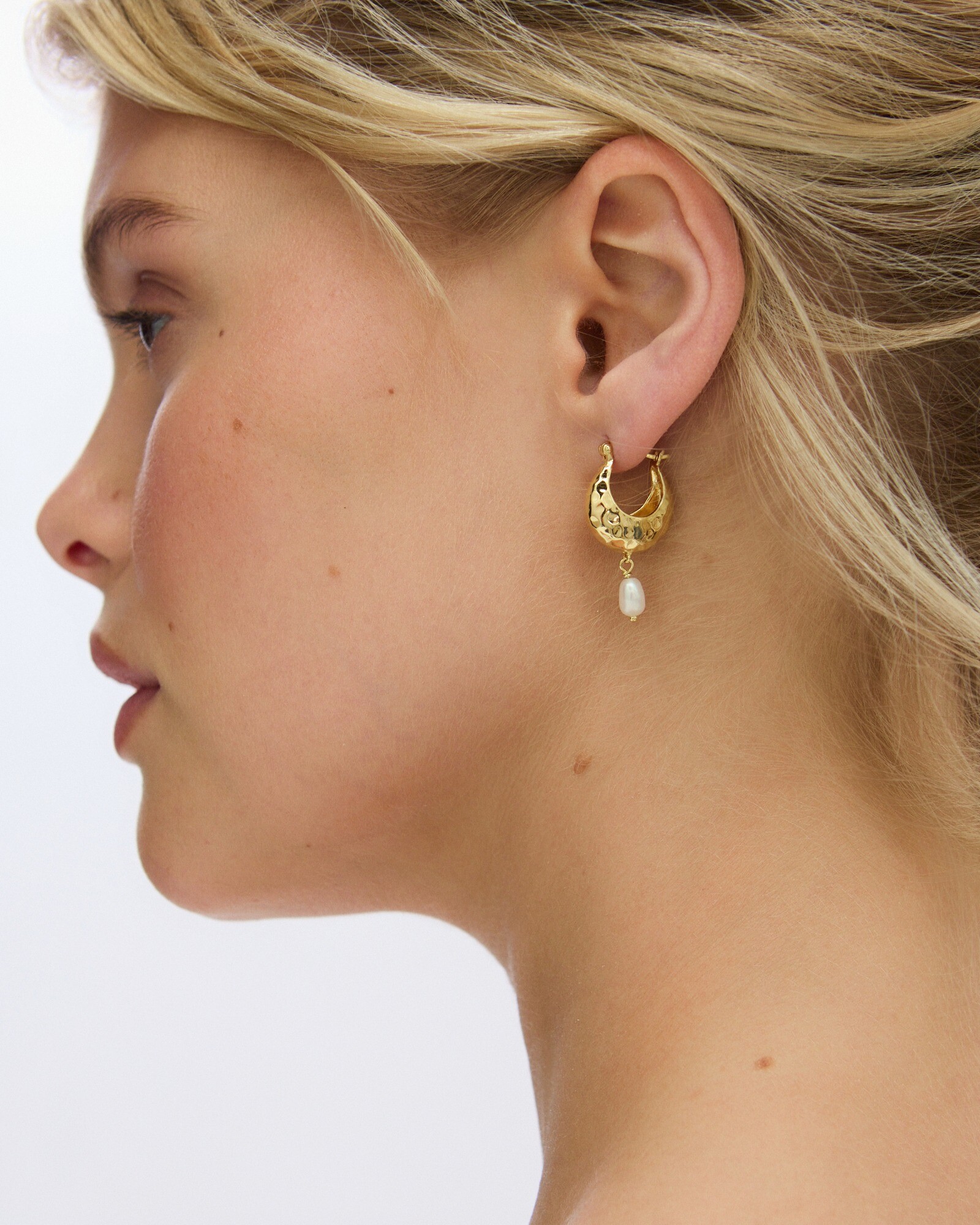 Home | Jewellery | Pearl Jewellery | Pearl Earrings | Penelope Gold Plated Hammered Pearl Drop Earrings