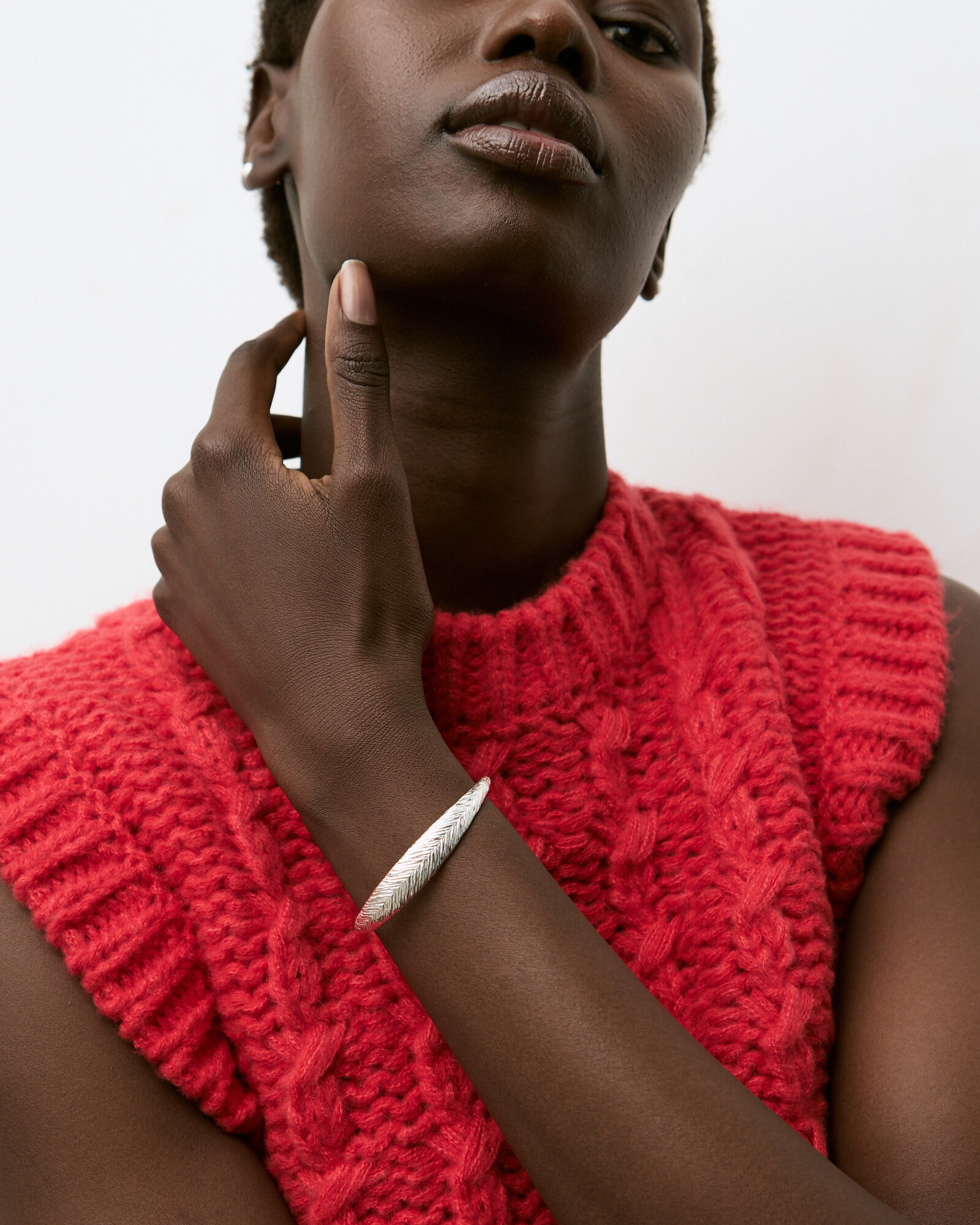 Our silver-plated jewellery is coated in a layer of approximately three to five microns of silver plate on a brass base. This allows us to keep our designs both high quality and affordable, for long-term wear. For more information about the materials we use in our jewellery, read our jewellery material guide.