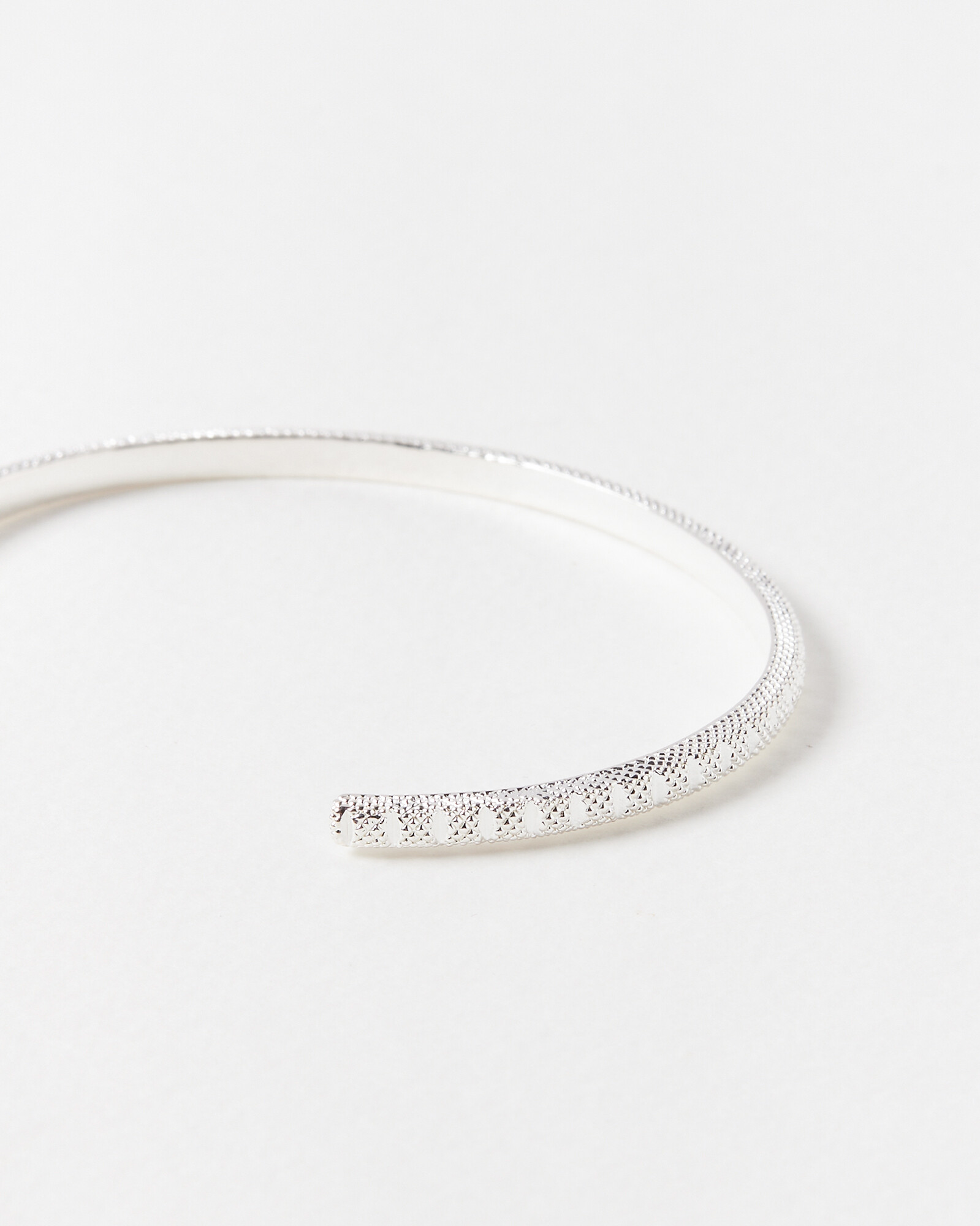 Our silver-plated jewellery is coated in a layer of approximately three to five microns of silver plate on a brass base. This allows us to keep our designs both high quality and affordable, for long-term wear. For more information about the materials we use in our jewellery, read our jewellery material guide.