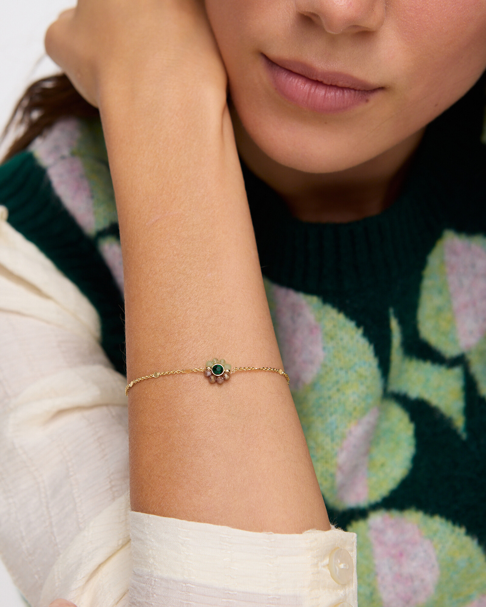 Rosalie Beaded Flower Gold Tone Chain Bracelet