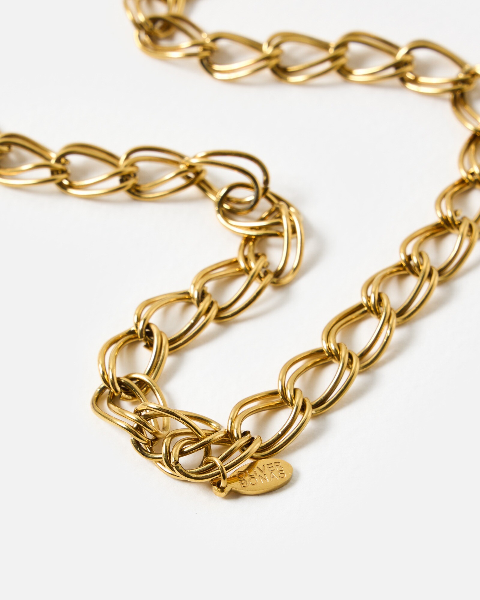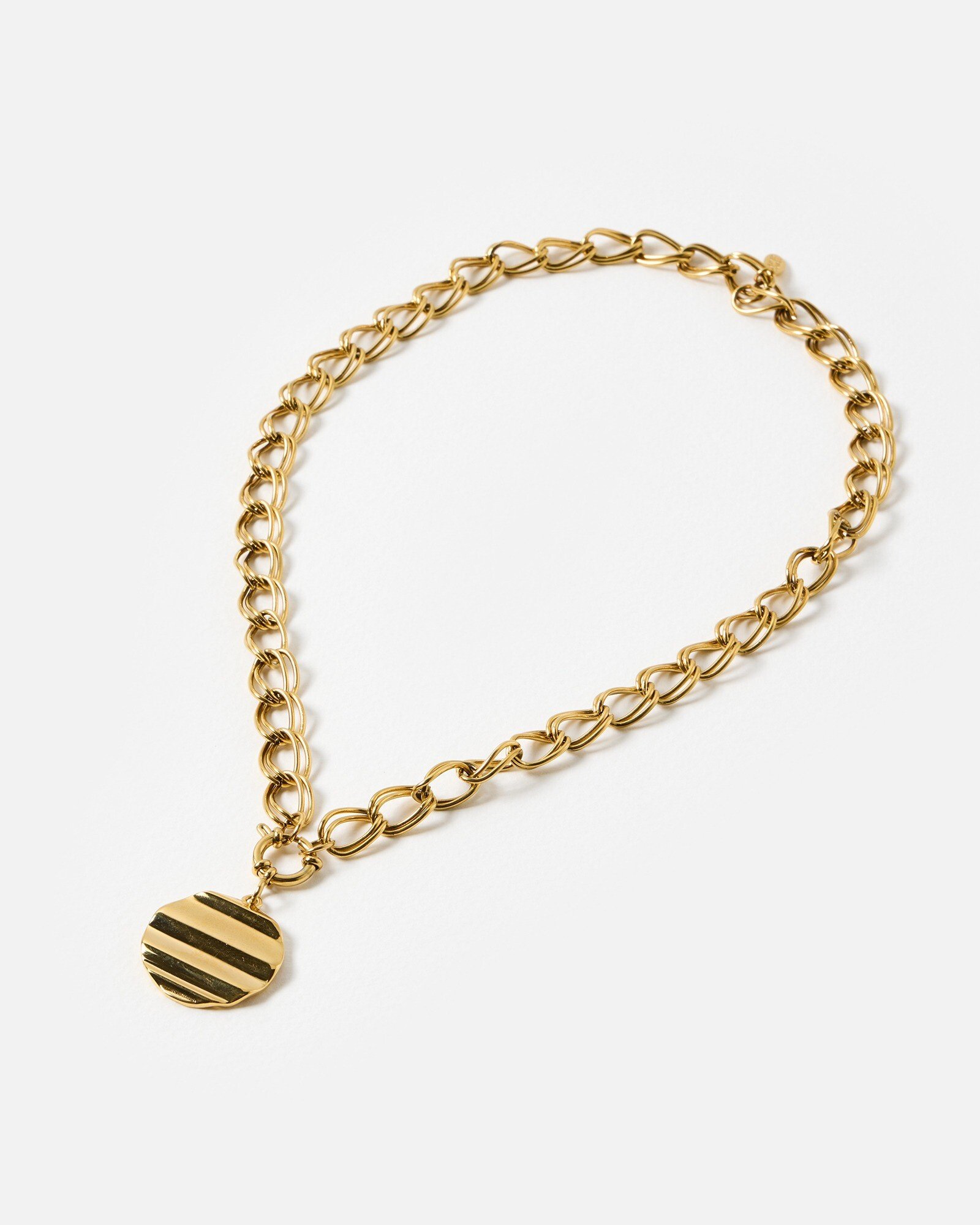 The stainless steel base is protected with a long-lasting PVD (Physical Vapour Deposition) coating applied via a vacuum process, used to deposit a thin layer of gold onto the surface of the necklace for a more durable finish that's less like to tarnish or fade. With a high-shine finish and lobster clasp closure, choose to wear this gold necklace at the collar, or style lower as a layering necklace for summer holiday and beach-ready looks.