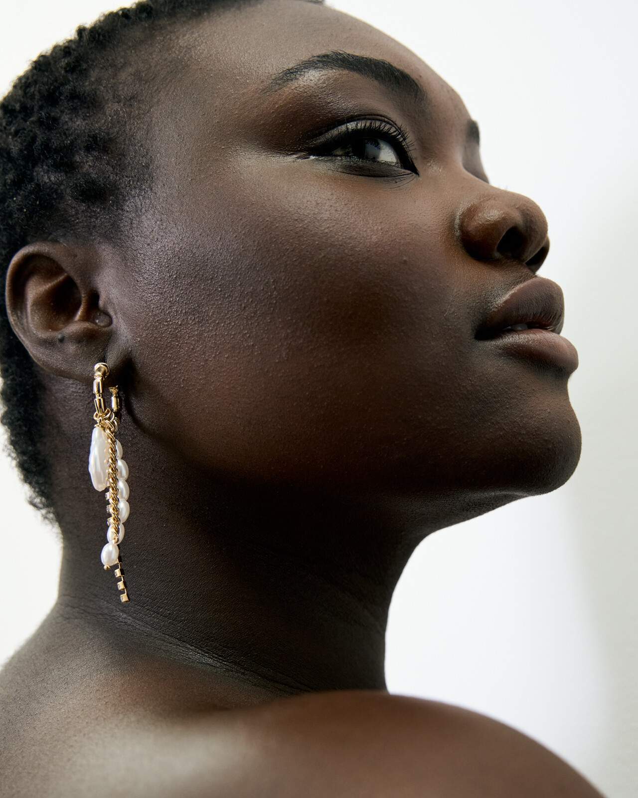 Home | Jewellery | Earrings | Drop Earrings | Stevie Chain & Faux Pearl Gold Tone Charm Drop Earrings