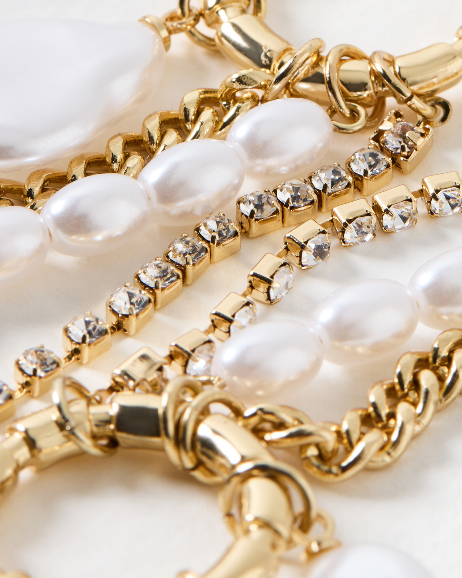 Stevie Chain & Faux Pearl Gold Tone Charm Drop Earrings