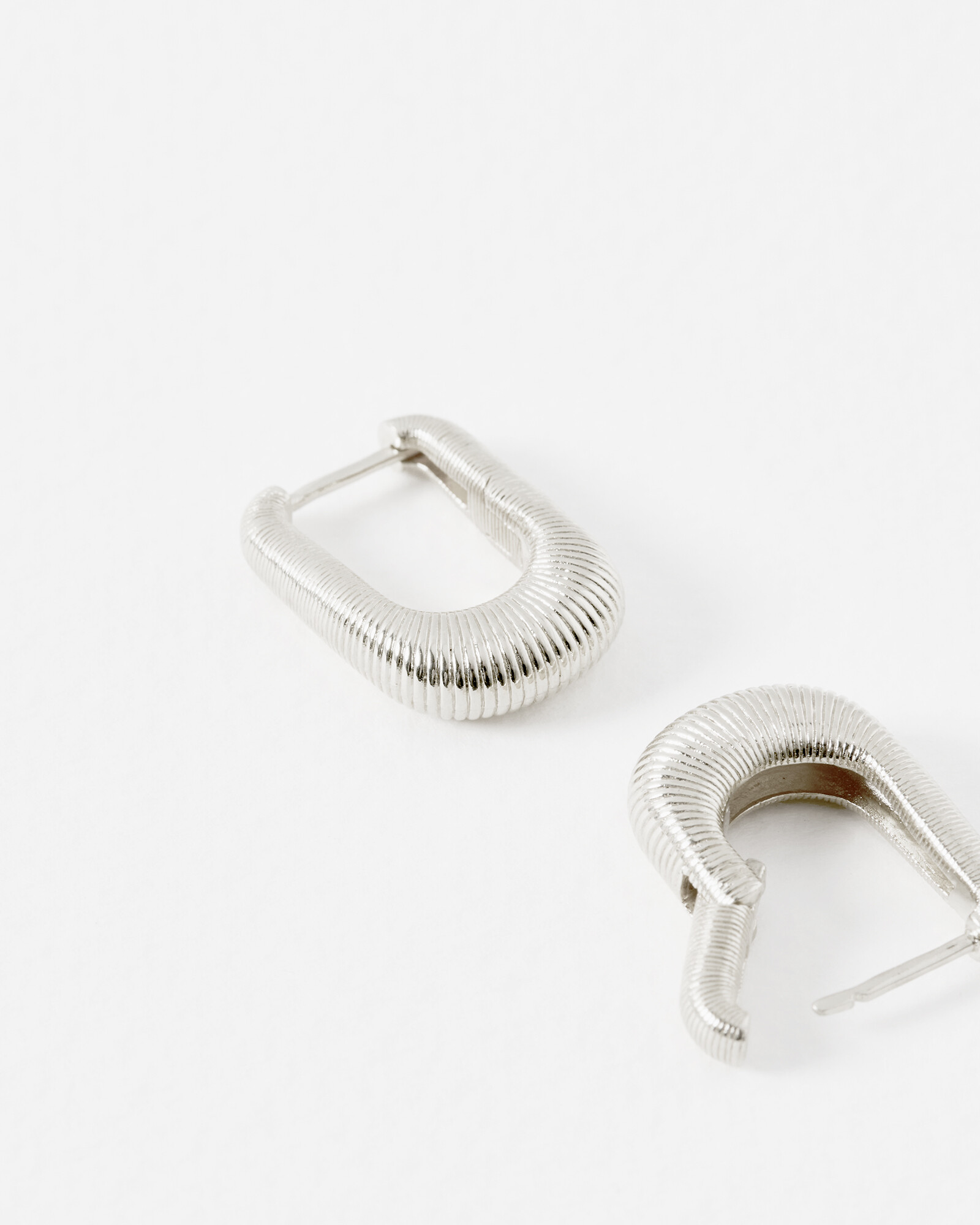 Una Etched Silver Plated Oval Hoop Earrings