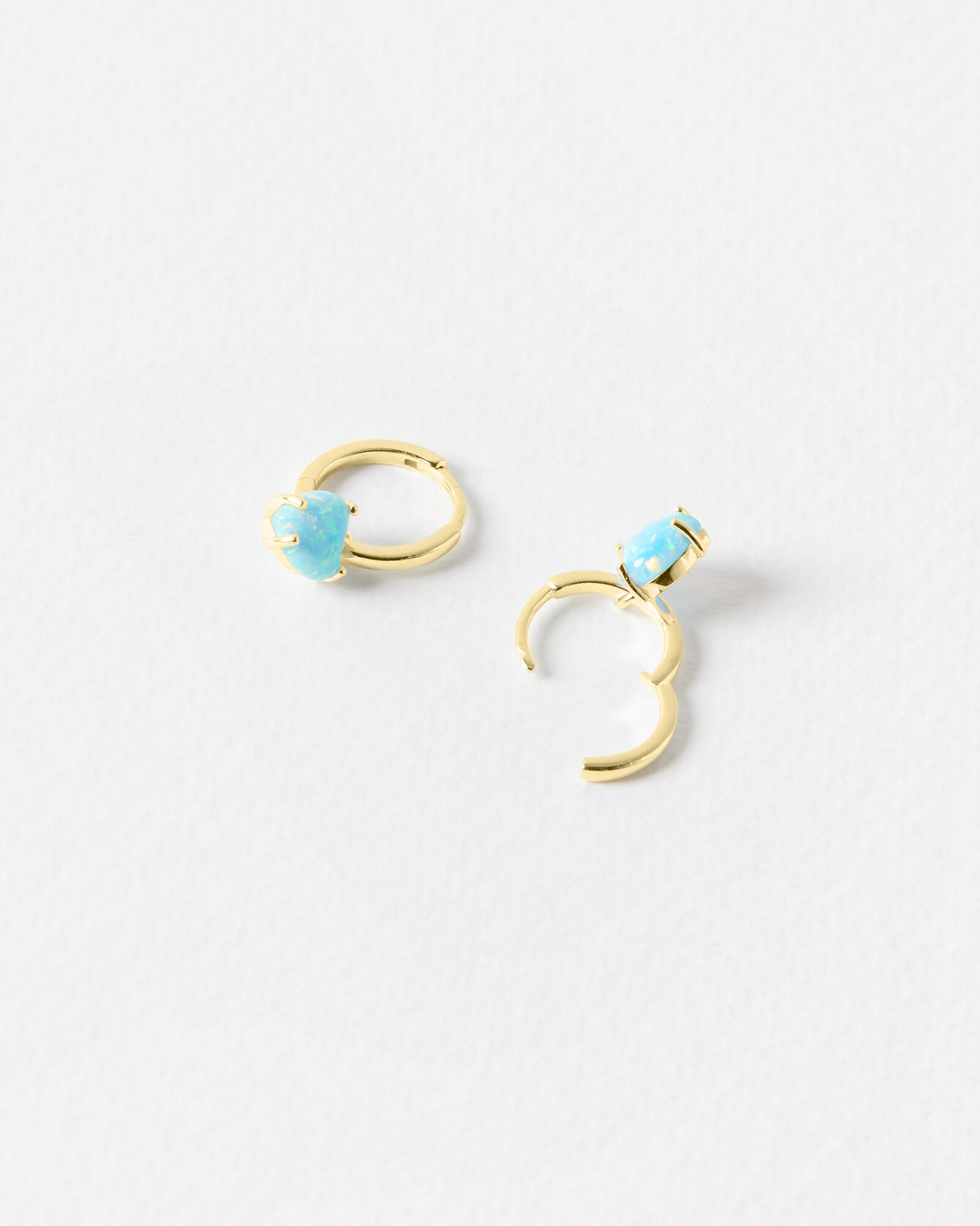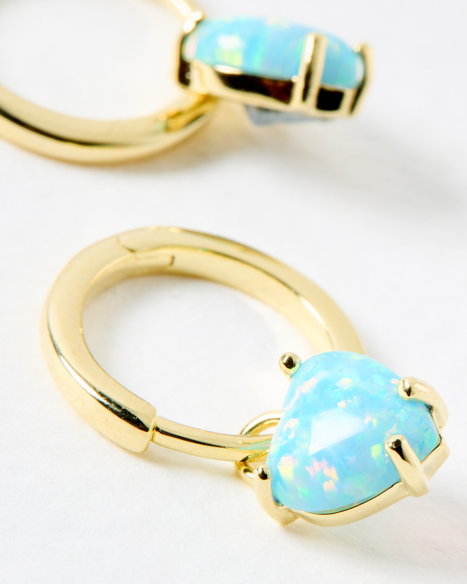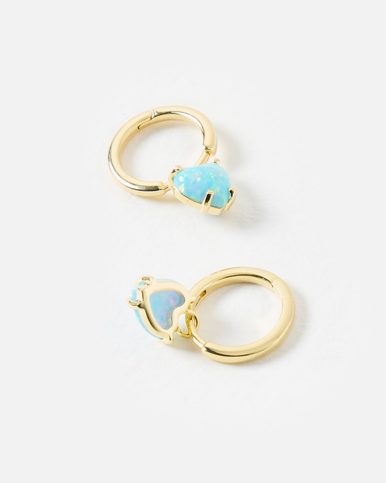 Ura Gold Plated Opalite Heart Charm Hoop Earrings