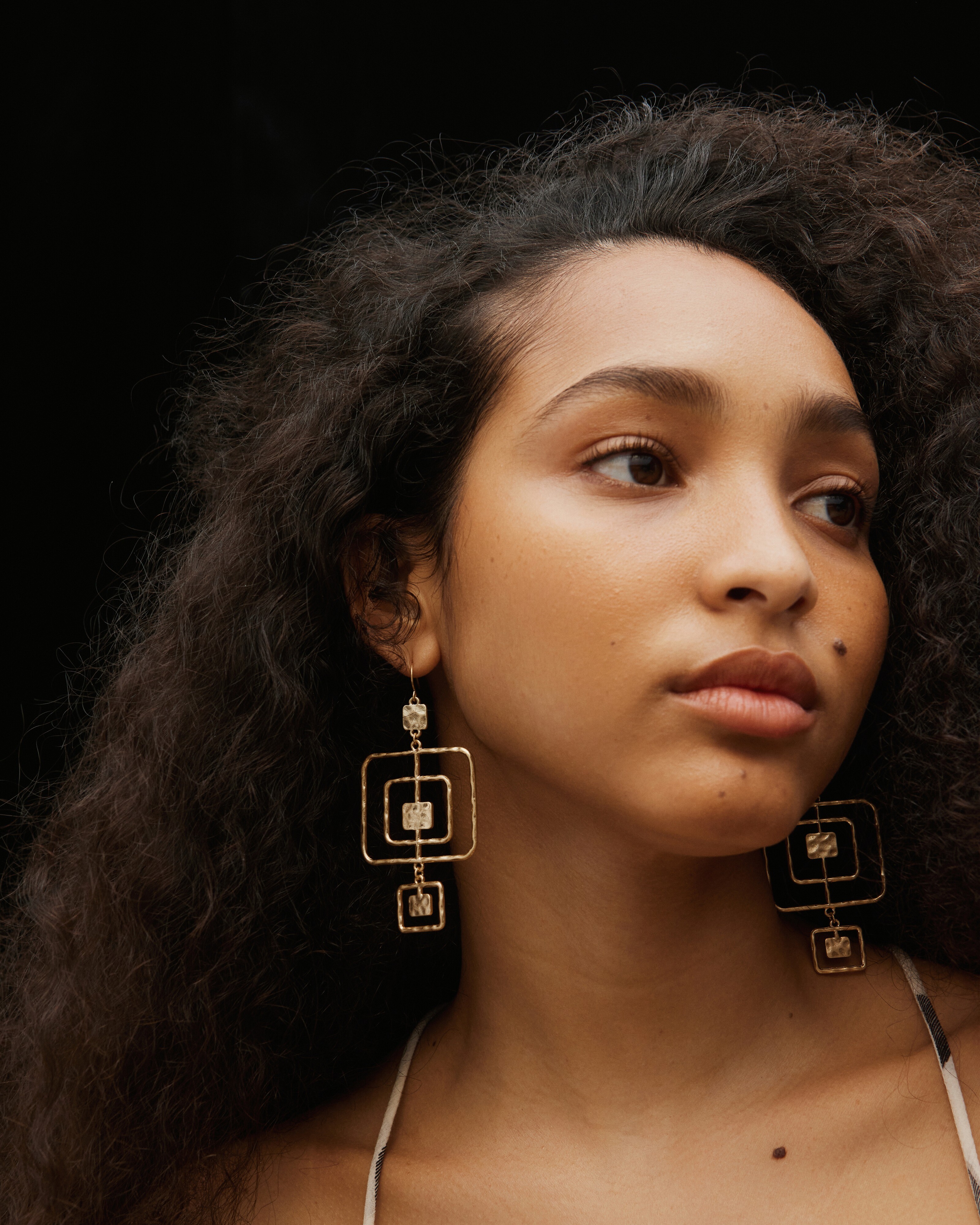 Vivienne Molten Metal Square Gold Tone Statement Earrings