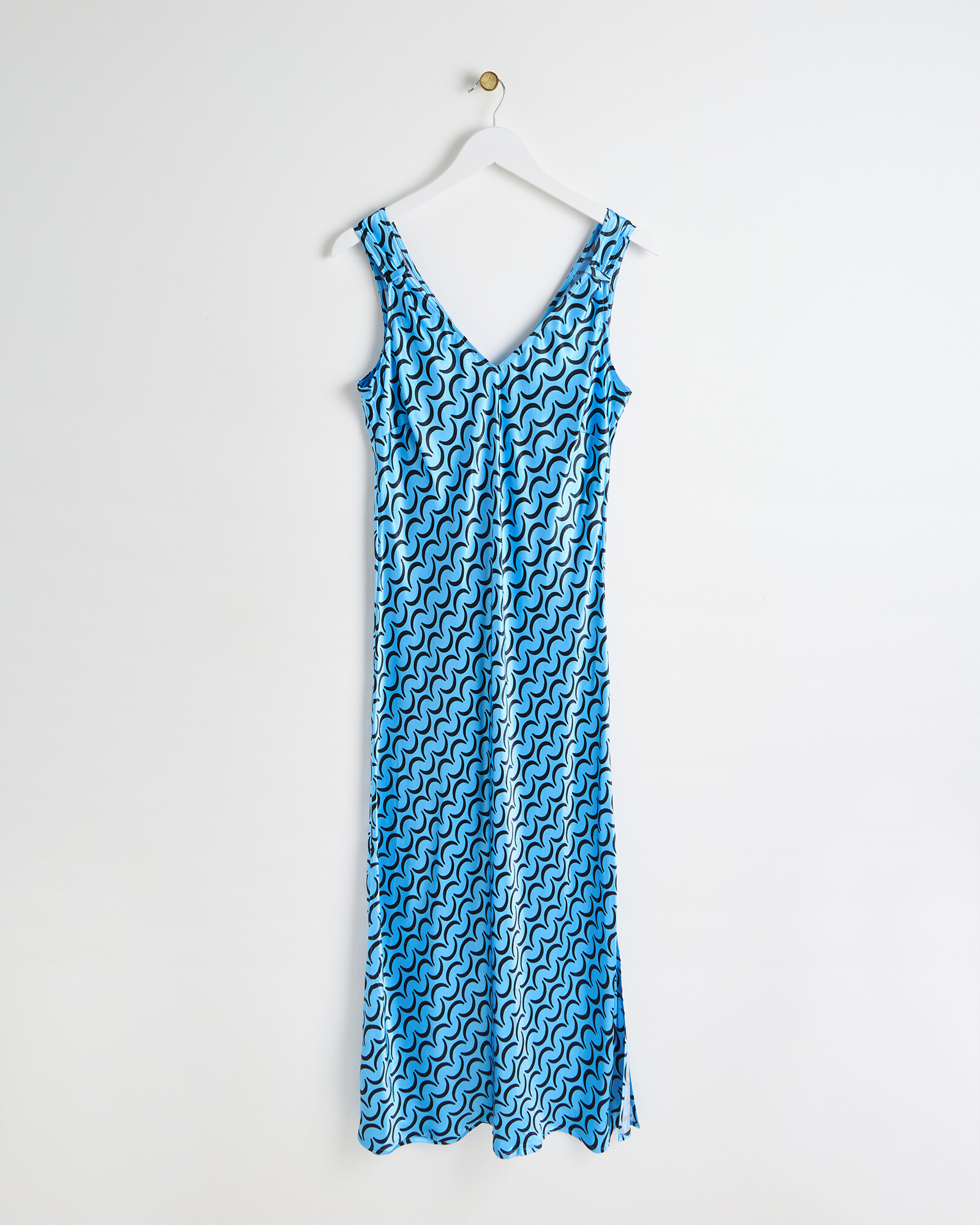 Blue Crescent Print Slip Midi Dress