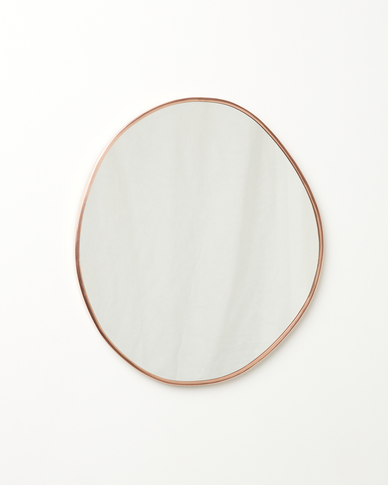 Add a surreal twist to your walls with the organic shape of the Large Pebble Wall Mirror, framed in metallic rose gold.