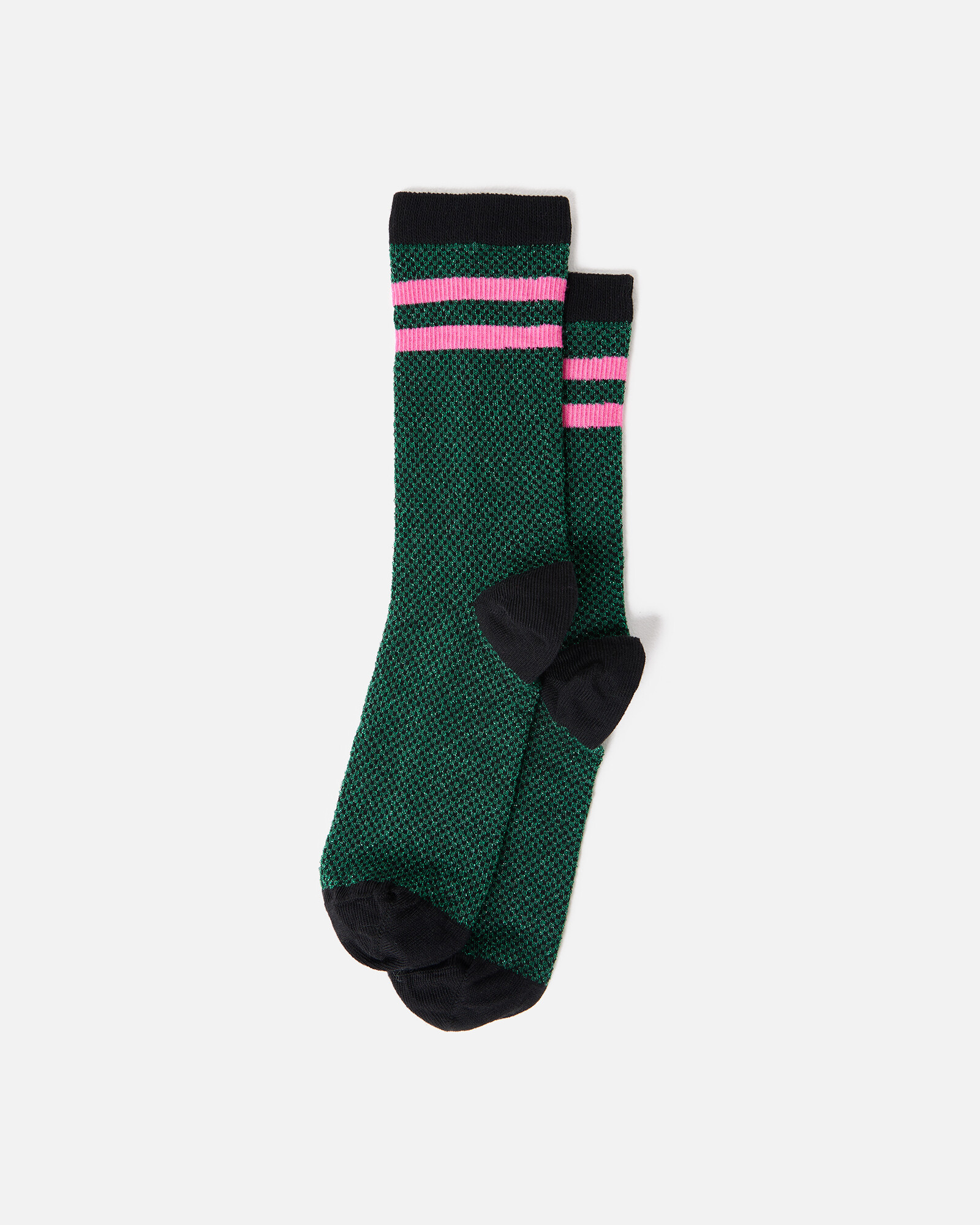 Green & Pink Striped Glitter Ankle Socks