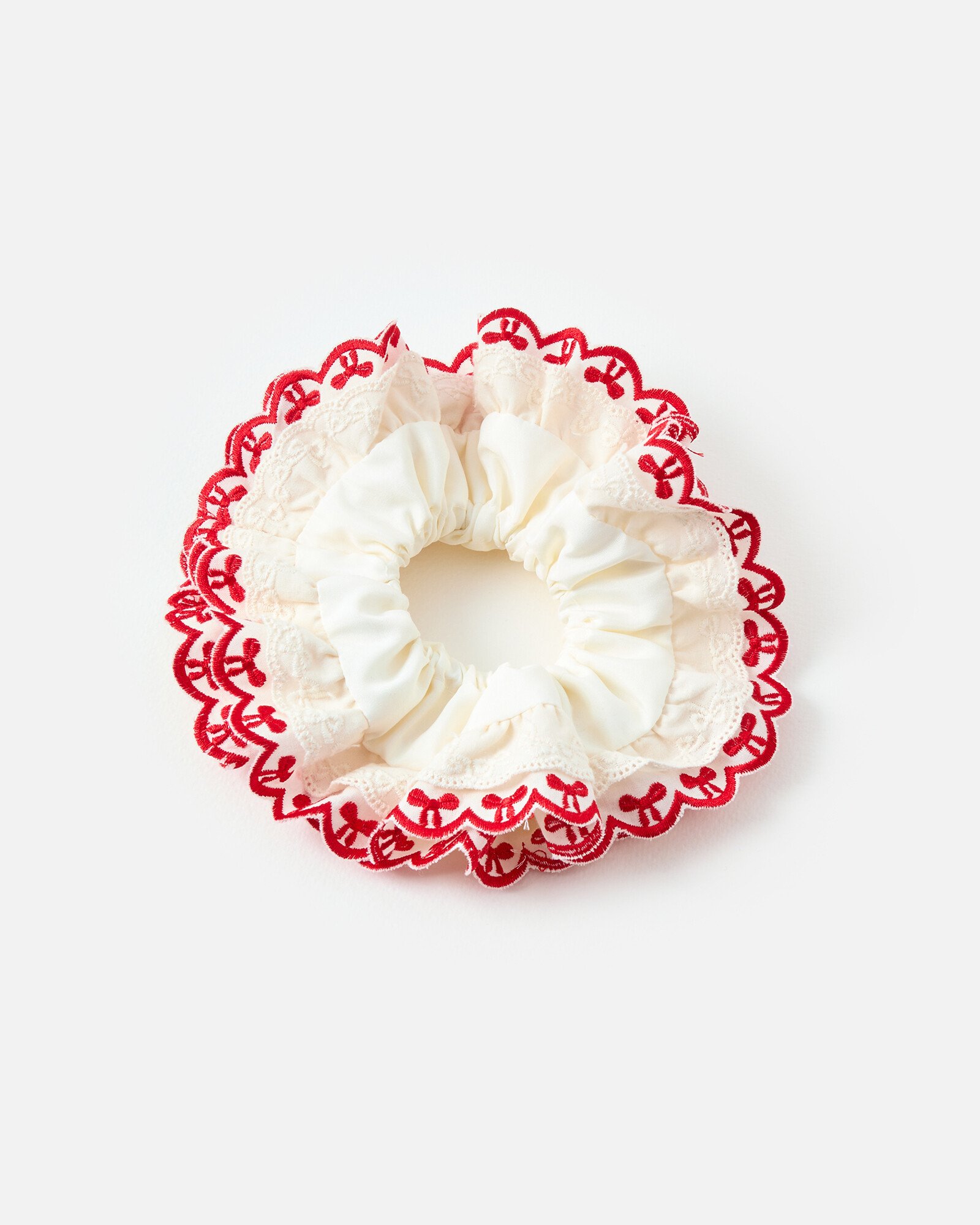 Kendall Cream & Red Bow Frill Large Hair Scrunchie