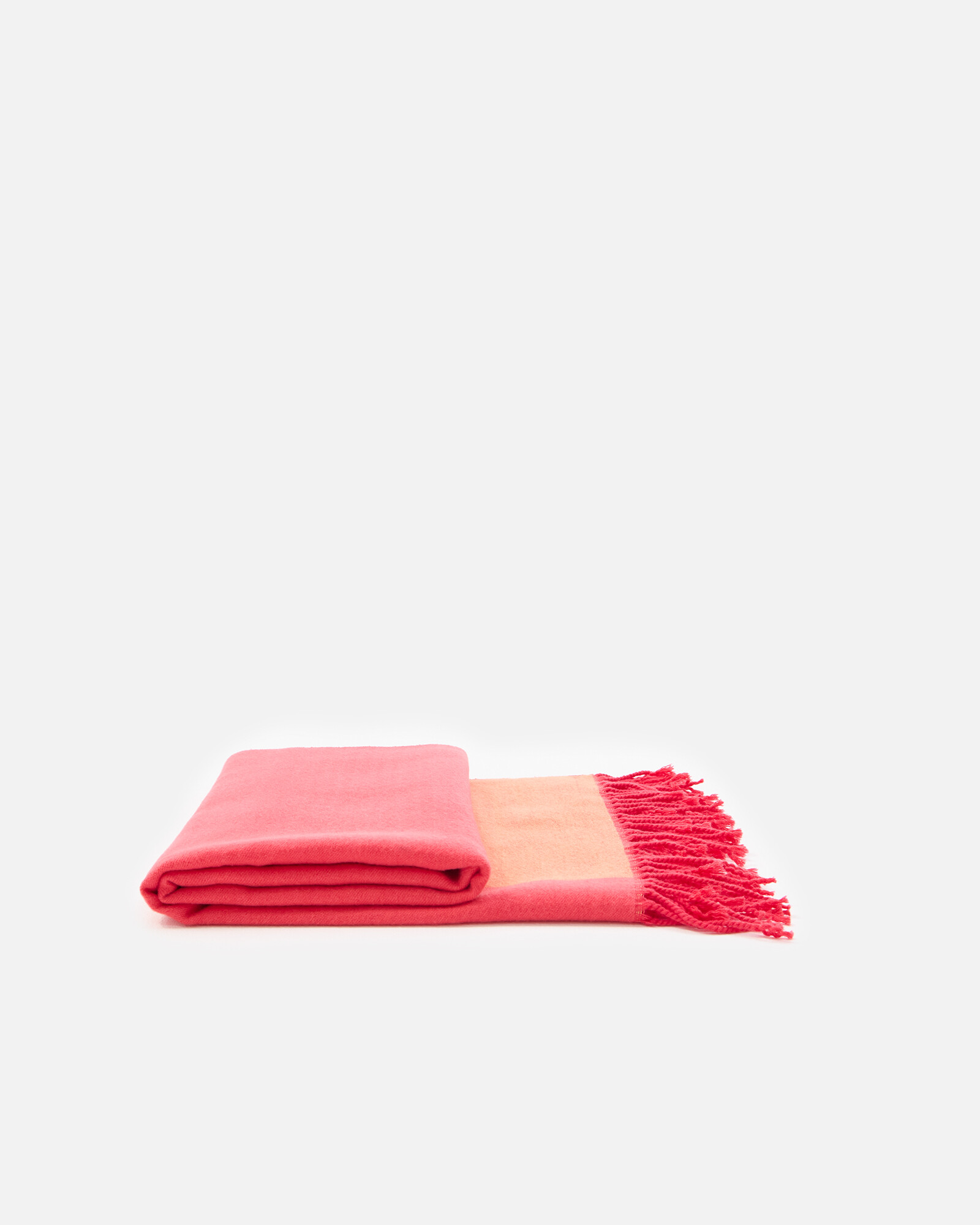 Soft blanket scarf woven in a tonal orange colour block design.