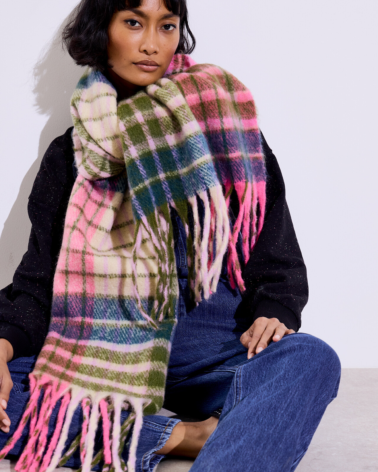 Pink & Green Heavyweight Checked Scarf