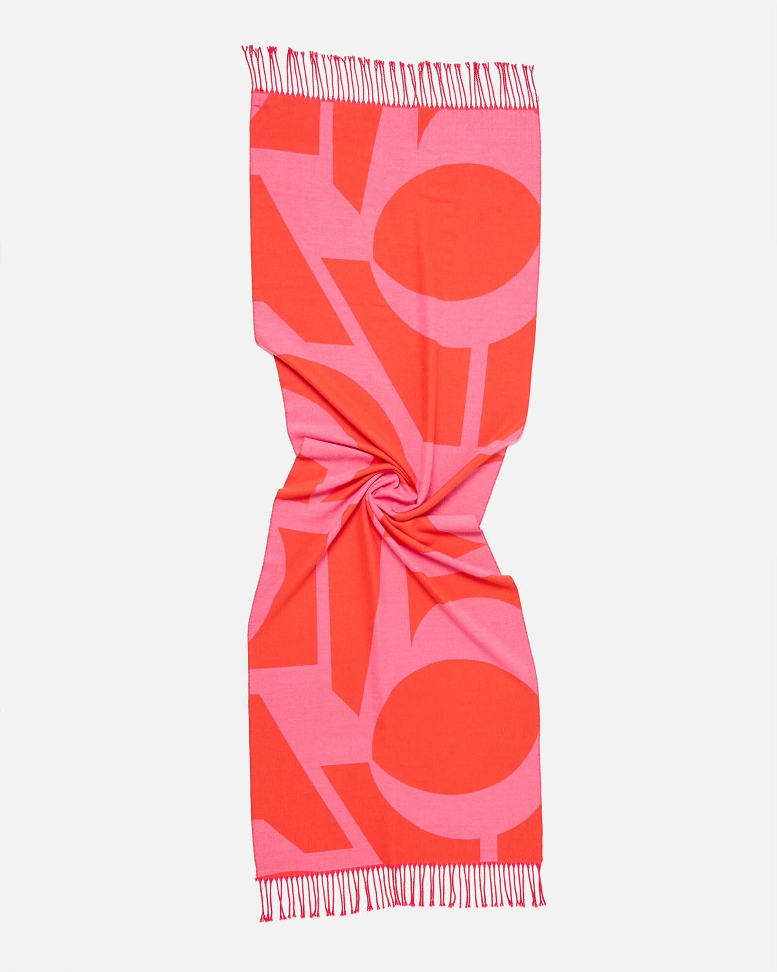 Pink & Red Midweight Geometric Tassel Scarf