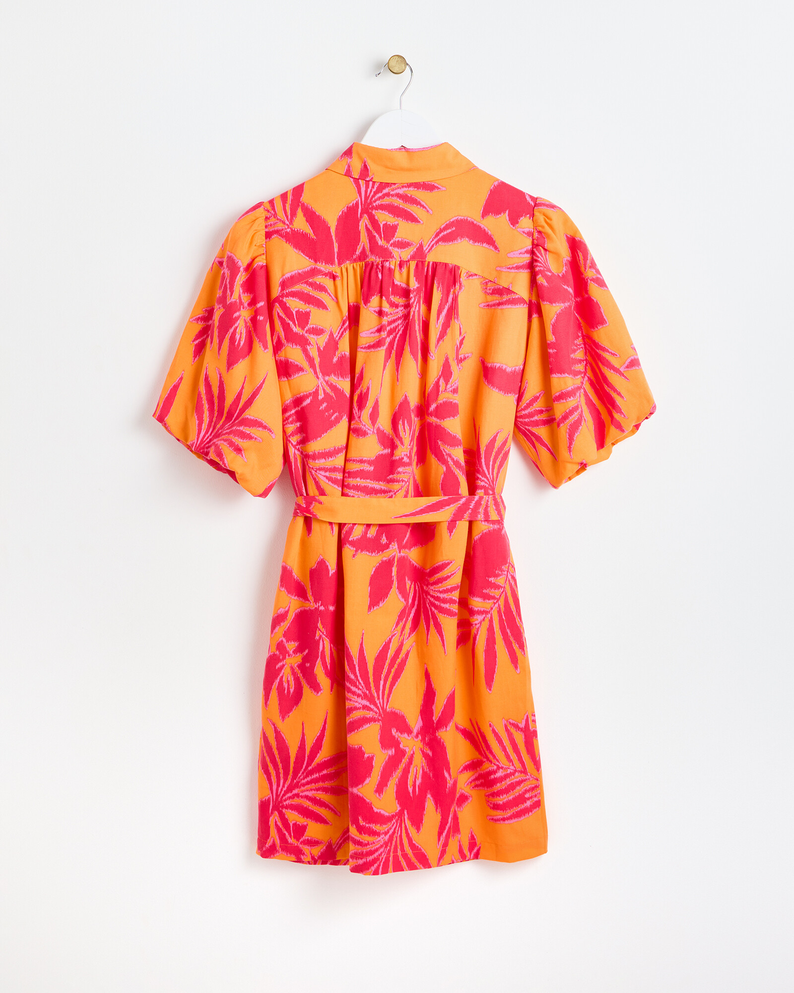 Shadow Floral Orange Mini Shirt Dress