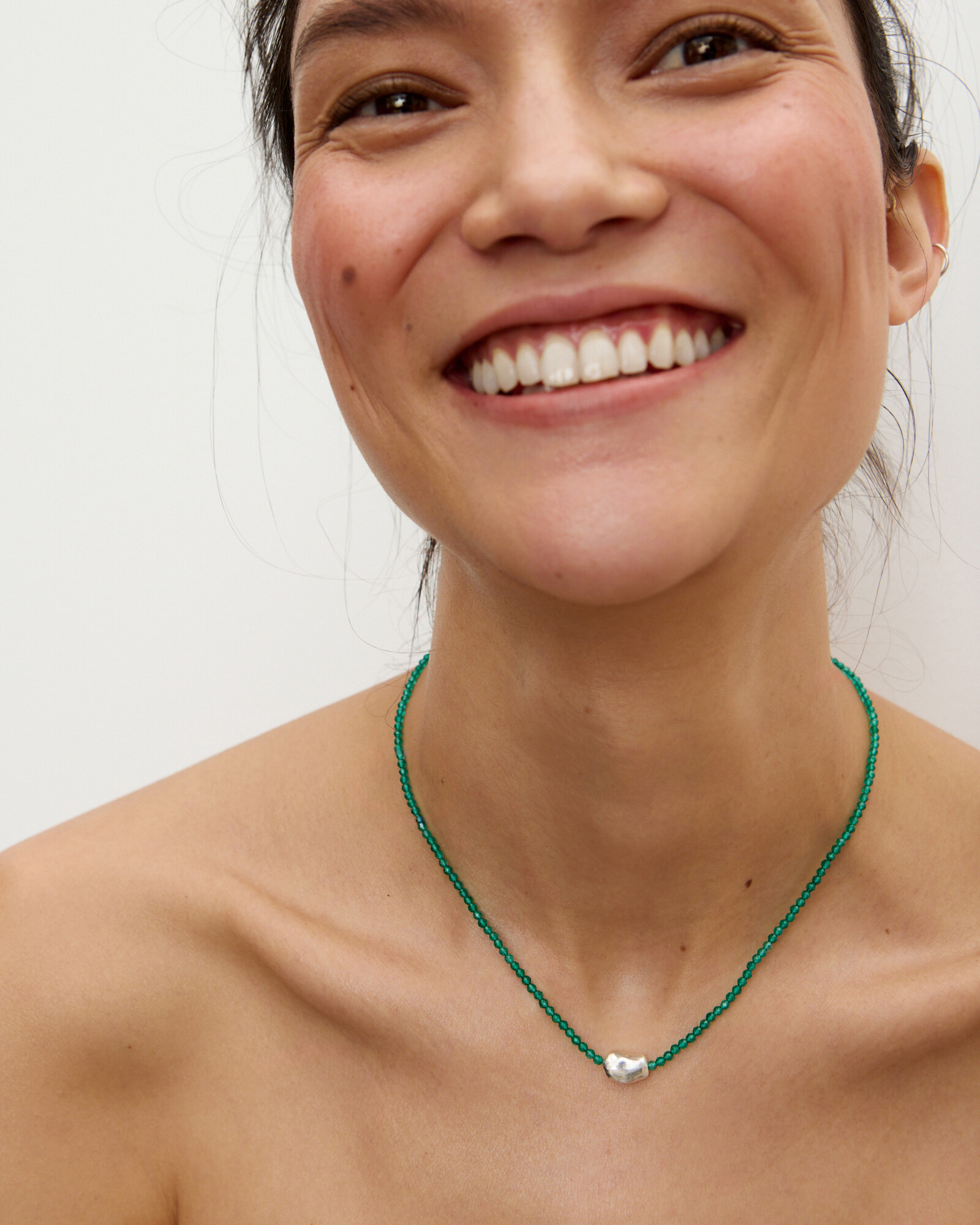Amica Green Onyx & Molten Silver Beaded Necklace