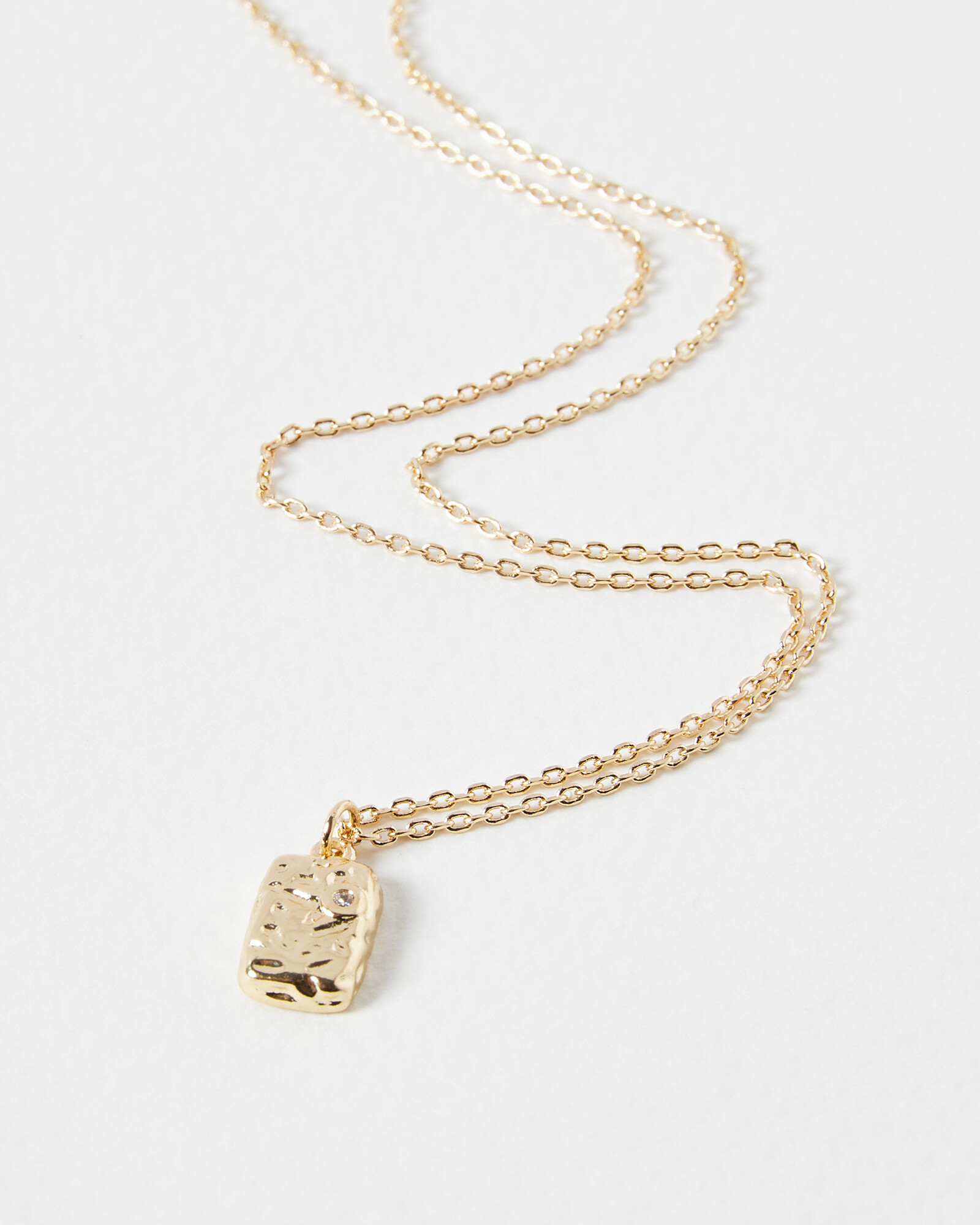 Catalina Rectangular Molten Metal Gold Tone Short Drop Necklace