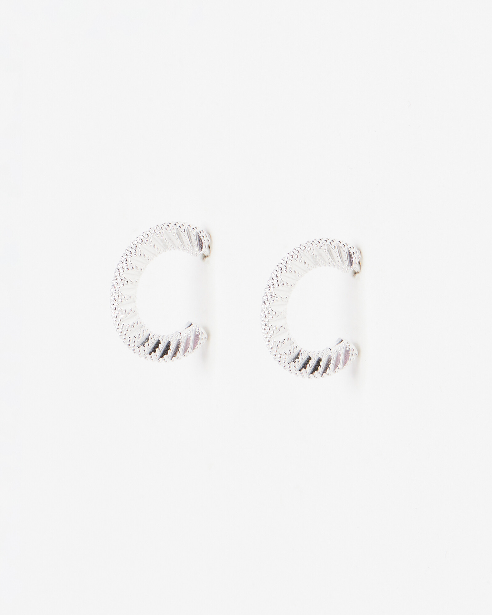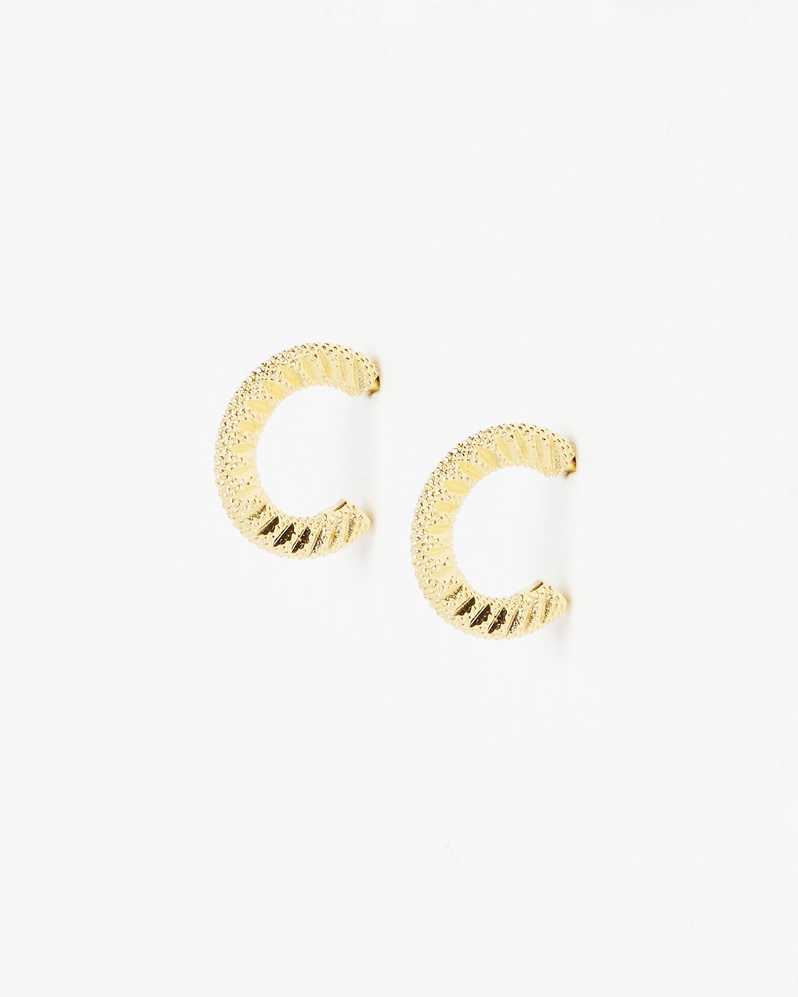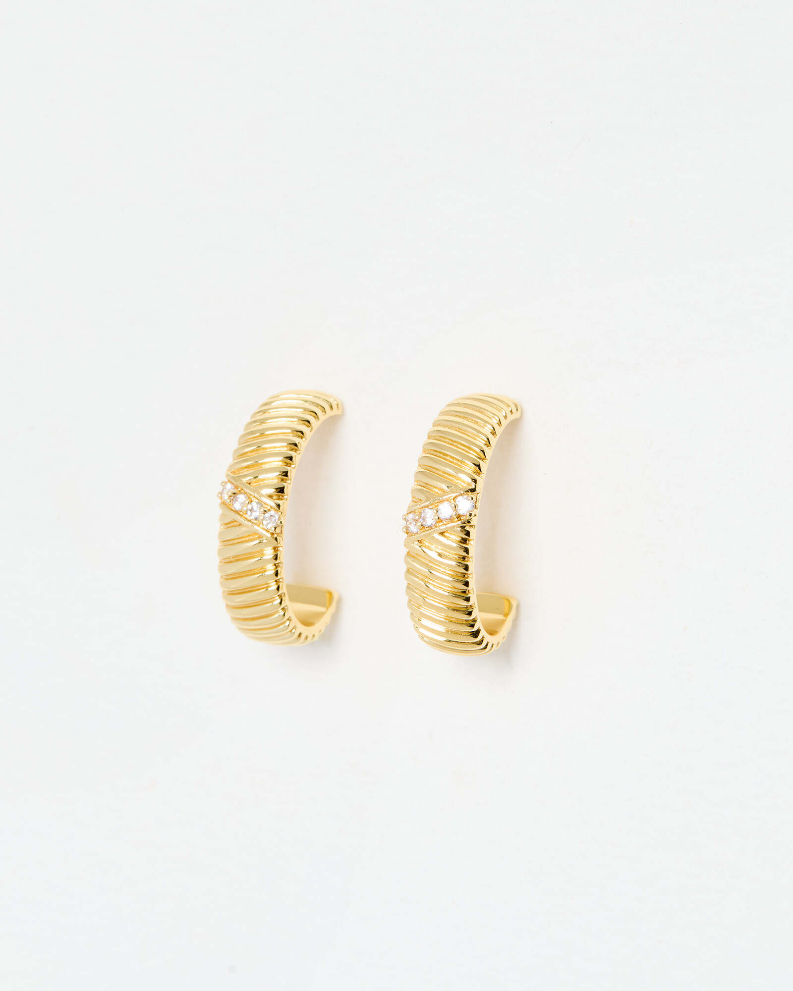 Skya Etched Cubic Zirconia Gold Tone Huggie Earrings