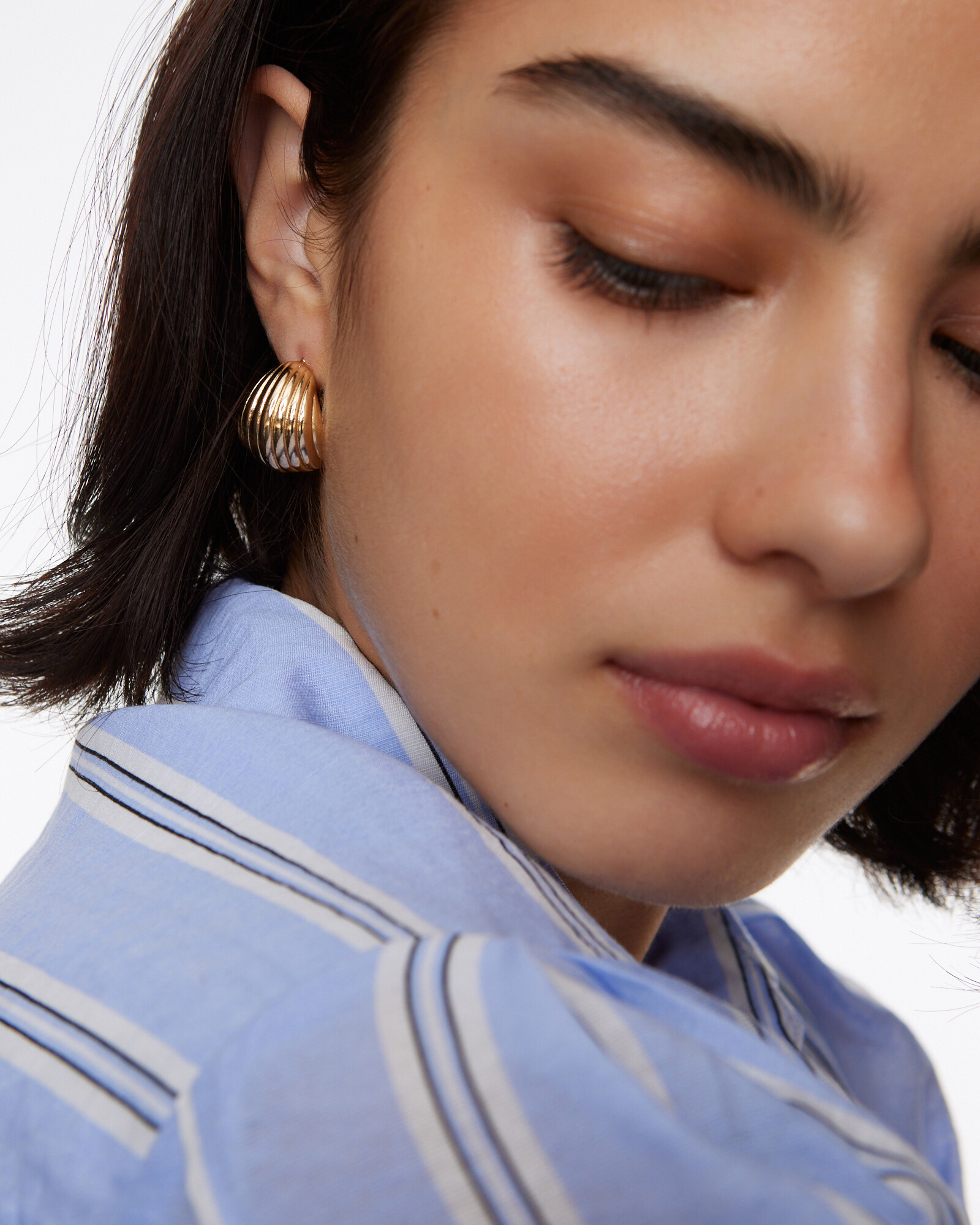 Maeve Circular Ribbed Gold Tone Hoop Earrings